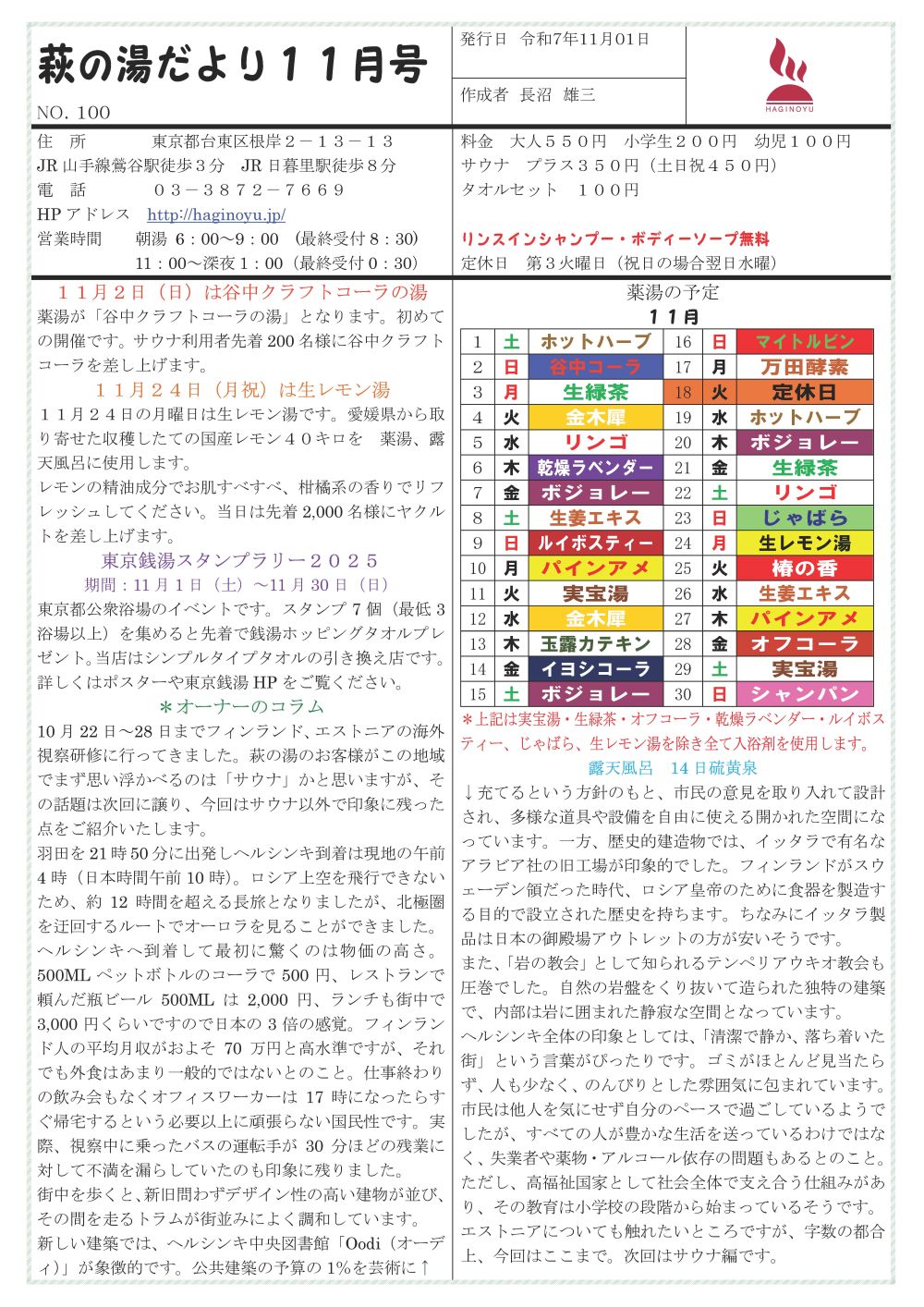 萩の湯だより11月号です。 11月号←こちらをクリック