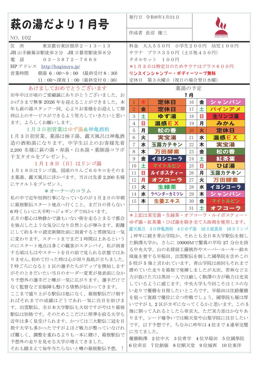 萩の湯だより1月号です。