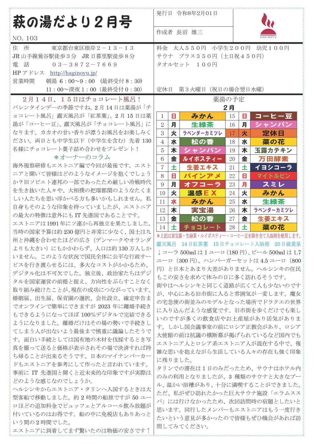 萩の湯だより2月号です。