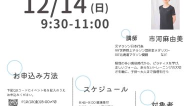 未分類12月14日(日)は萩の湯ランニングレッスン 12月14日(日)は萩の湯にて元マラソン日本代表市河麻由美さんによる「ランニングレッスン」を実施します。料金は3,000円、申し込みは以下よりお願いします。 2025.11.29未分類